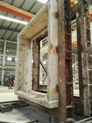 الإطار الكامل مناسب للتحرك مع الرافعة الجسرية داخل المبنى. يتم توصيل قضبان الأسطوانة الأربعة بأقواس الإسفين على الإطار لجعلها ثابتة ومختومة في غرفة الاحتراق.