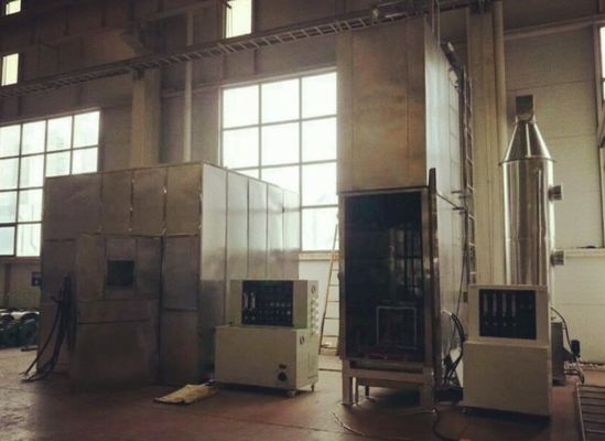 تبلغ أبعاد غرفة الاختبار 1،000 ± 100 (W) x 2،000 ± 100 (D) x 4،000 ± 100 (H) mm. السطح السفلي لغرفة الاختبار أعلى من الأرض بينما الجانب الخلفي مكمل بمادة معزولة لعزلها عن الحرارة ، وفي القسم السفلي من حجرة الاختبار يوجد 800 ± 20 (عرض) × 400 ± 10 ( د) فتحة بحجم 150 ± 10 مم من الجانب الأمامي للغرفة لتزويد الهواء.