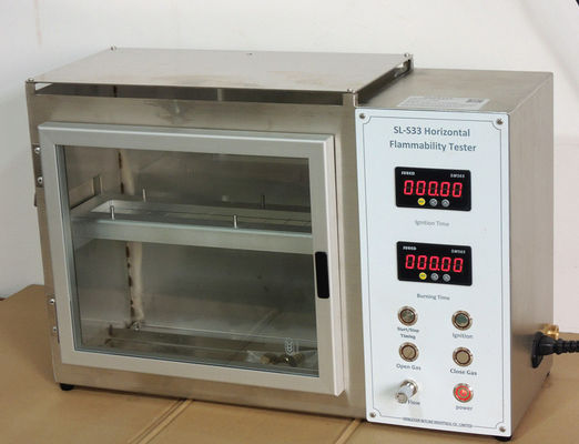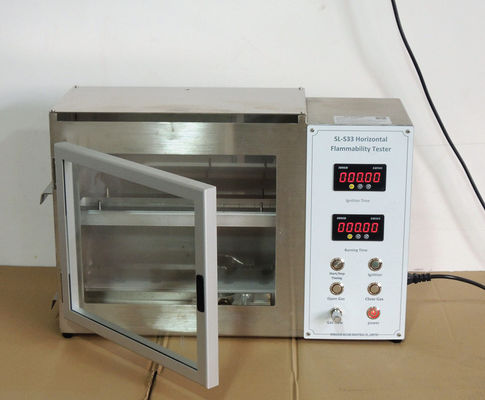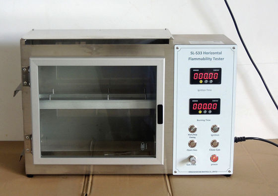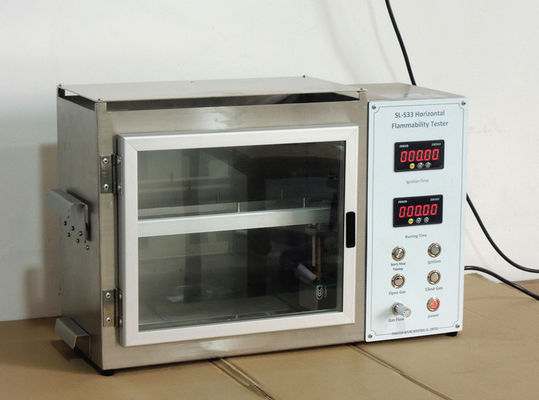 تتكون الأداة من جزأين: صندوق التحكم وصندوق الاحتراق.يتم تثبيت العينة بشكل مسطح بواسطة المشبك ووضعها على حامل صندوق الاحتراق.يتم إشعال اللهب بواسطة صندوق التحكم لفترة معينة ، ويتم إطفاء اللهب.راقب انتشار اللهب في العينة ، وقم بقياس الوقت الذي يستغرقه اللهب في الانتشار لمسافة معينة على العينة ، واحسب سرعة انتشار اللهب ، وقم بتقييم مقاومة اللهب للعينة.