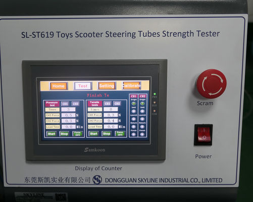 اختبار مقاومة الضغط النزولي: بالنسبة لمقبض سكوتر اللعبة ، تم تطبيق الحمل الرأسي لأداة التحميل واستمر لمدة 5 دقائق ثم تفريغها لتقييم أداء قوة الأنبوب الرأسي.