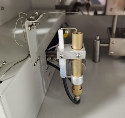 لفترة زمنية معينة ، تتعرض نهاية عينة الحزام الناقل الأفقي للهب من موقد الغاز المعين ، ويتم قياس مدة إزالة لهب الموقد.بعد اختفاء اللهب ، يمر تدفق الغاز عبر العينة لقياس مدة الشفق.