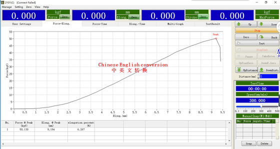 2. واجهة كمبيوتر شبكة قياسية ، مع برنامج قياس وتحكم احترافي خاص ، عرض في الوقت الفعلي لإزاحة القوة ، وقت القوة ، وقت الإزاحة ، منحنيات الإجهاد والانفعال ، الحساب التلقائي للقوة القصوى ، قوة العائد ، متوسط القوة ، الحد الأقصى التشوه ونقطة العائد والمعامل المرن والمعلمات الأخرى ووظائف تحرير وطباعة التقارير المرنة.يمكن للتقرير عرض وطباعة قيمة قوة الشد (Mpa).