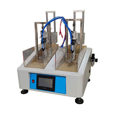 يتم ملء خزان المياه بكمية محددة من المياه الملونة. يتم وضع عينة على القدم الاصطناعية وتثني بزاوية وسرعة معينة ، وتفحصها في فترات زمنية لانتشار المياه.