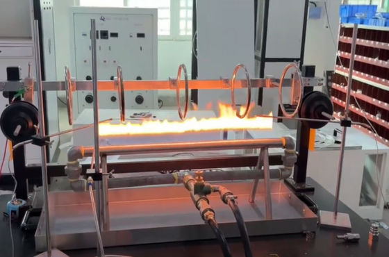 ويحترق في اللهب الذي لا يقل عن 750 درجة مئوية و 950 درجة مئوية لاختبار سلامة الكابل للحفاظ على الدوائر.