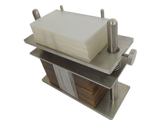 يتكون من عدد من ألواح الأكريليك والتي يمكن حفظها في إطار تحميل مناسب.يتكون إطار التحميل من لوحين من الصلب توضع بينهما ألواح الأكريليك.تُخيط عينة الاختبار بين قطع قماش بيضاء مناسبة وتُغمس في محاليل اختبار قلوية أو حمضية.